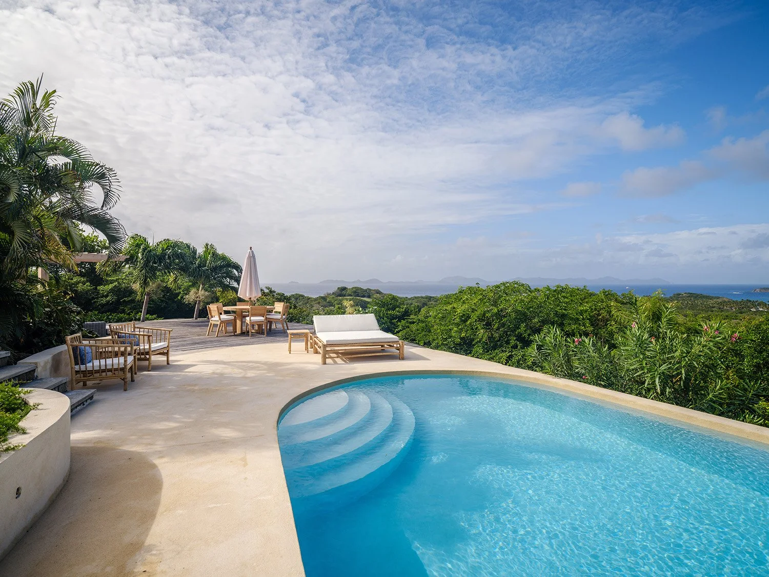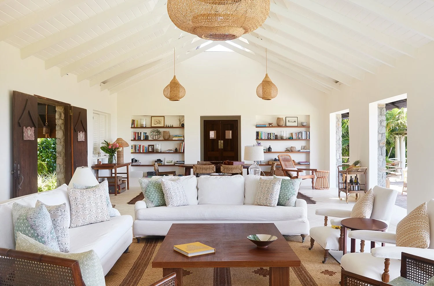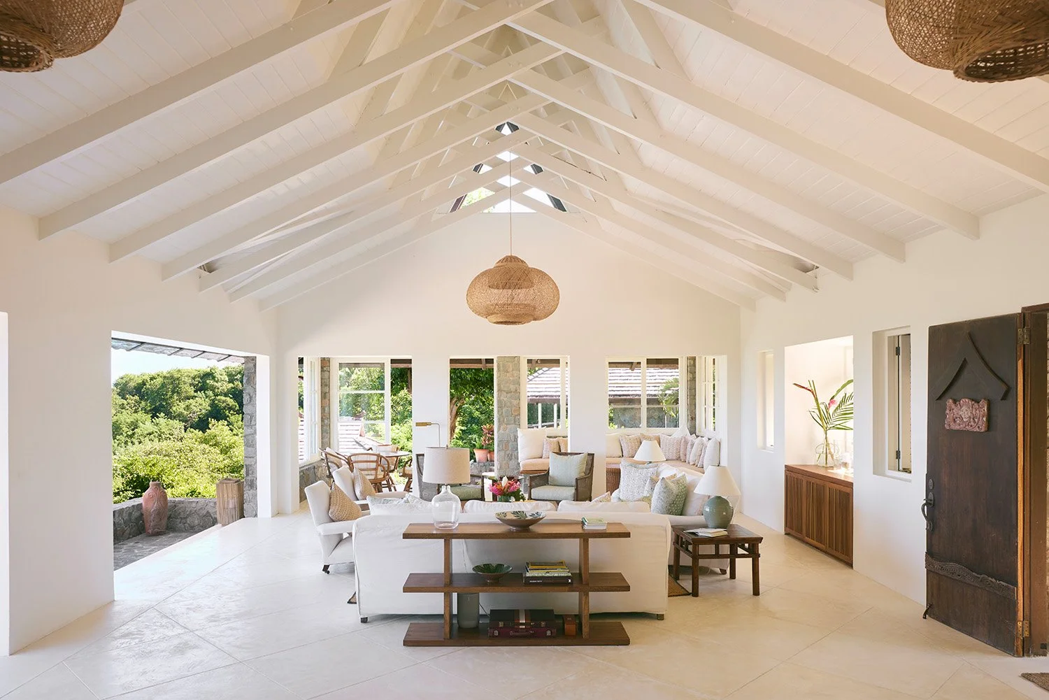 With no doors on the west side the spaces flow from indoor to out, a very Mustique experience.
